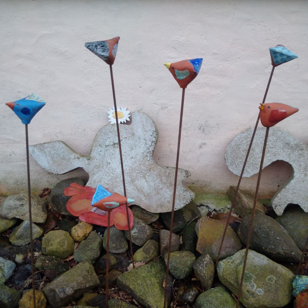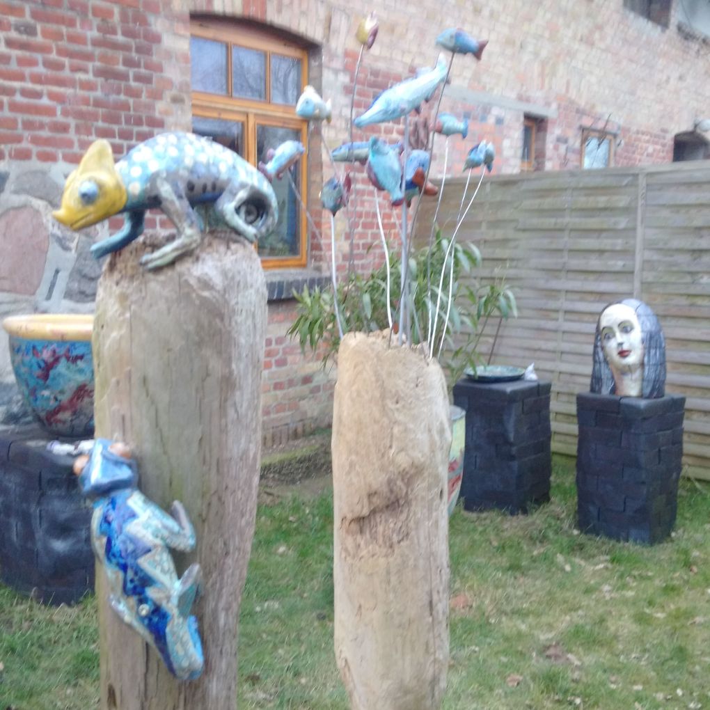 Meine plastischen Arbeiten beschäftigen sich mich mit Porträts, kleinen aber auch lebensgroßen Figuren, fantasievollen Pflanzen- und Tierplastiken, Zauberblumen“, Schachspiele, Schmuck, Handschmeichler, Nippes und Gartenplastik usw. Am Ende dieser Galerie sehen Sie meine ersten Klinkerfiguren aus dem Jahr 1986
