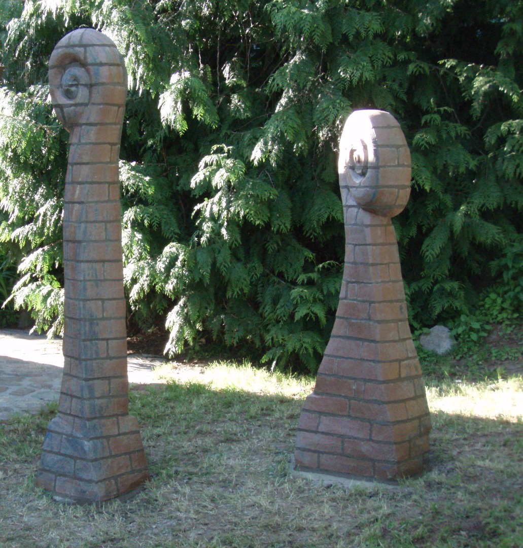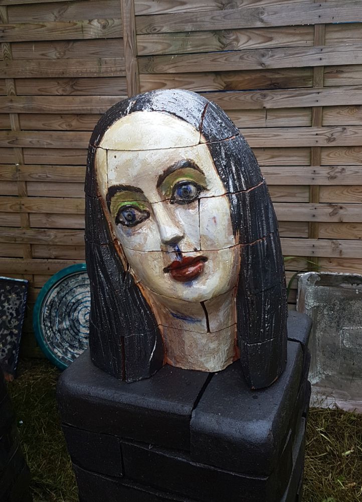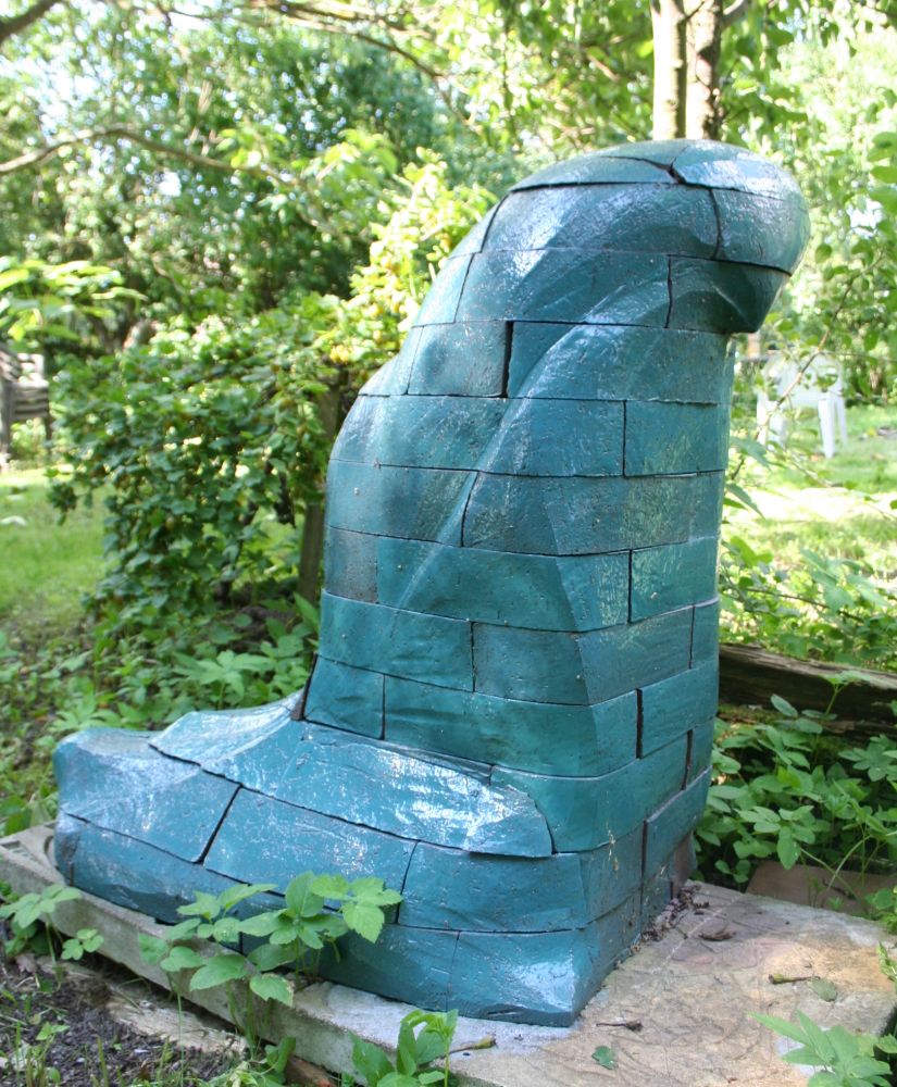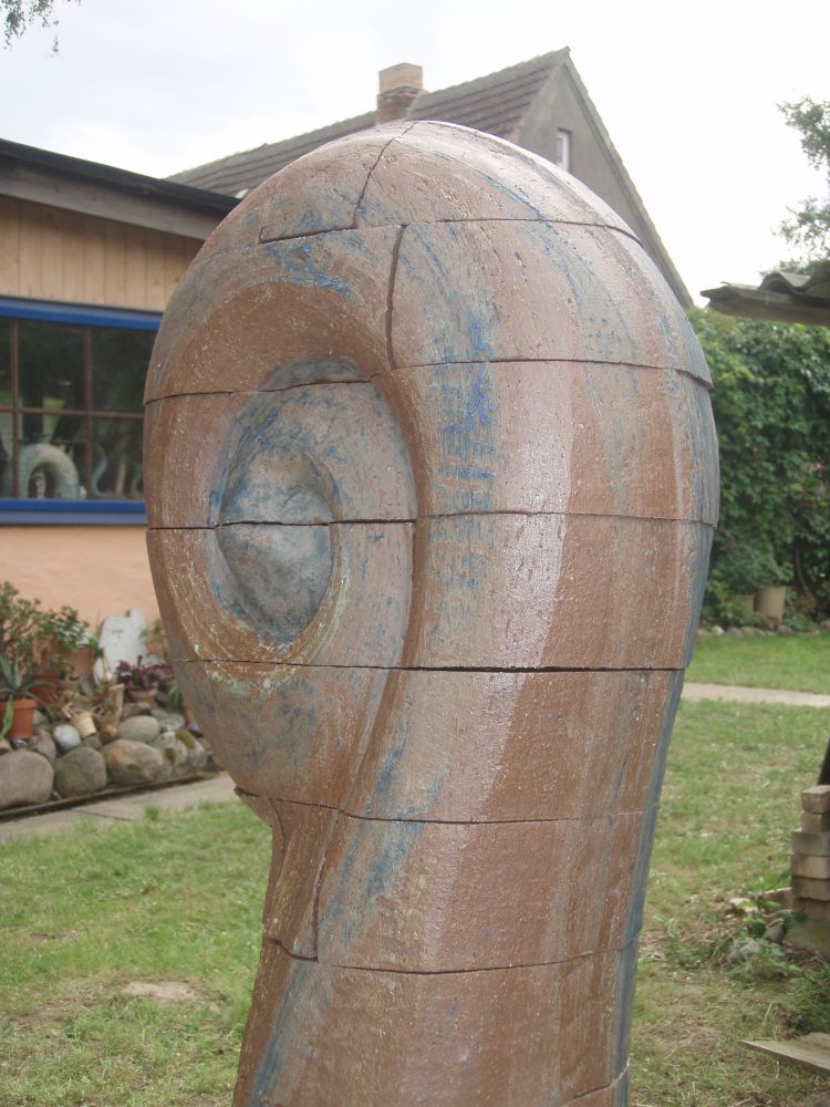 In meinen plastischen Arbeiten beschäftige ich mich mit Porträts, kleinen aber auch lebensgroßen Figuren, fantasievollen Pflanzen- und Tierplastiken. Es entstehen Objekte, die streng gebaut sind oder verspielt dekorativ, wie „ Zauberblumen“, Schachspiele, Schmuck, Handschmeichler, Nippes und Gartenplastik usw. ... Dabei gehe ich, was die Größe meines Elektroöfen betrifft, der immerhin 1 m hoch ist, bis an die Grenze der Machbakeit. Oder ich arbeite gleich im Werk mit Klinkern, wo ich mit dem Prinzip einzelner Bausteine fast keine Einschränkungen habe, auch nicht in der Farbigkeit.