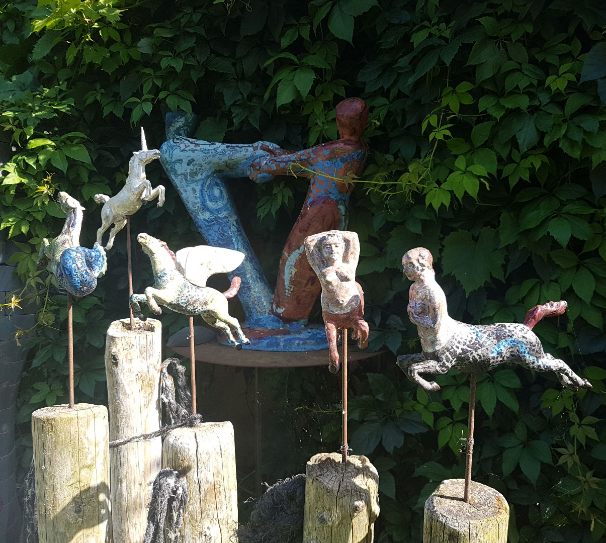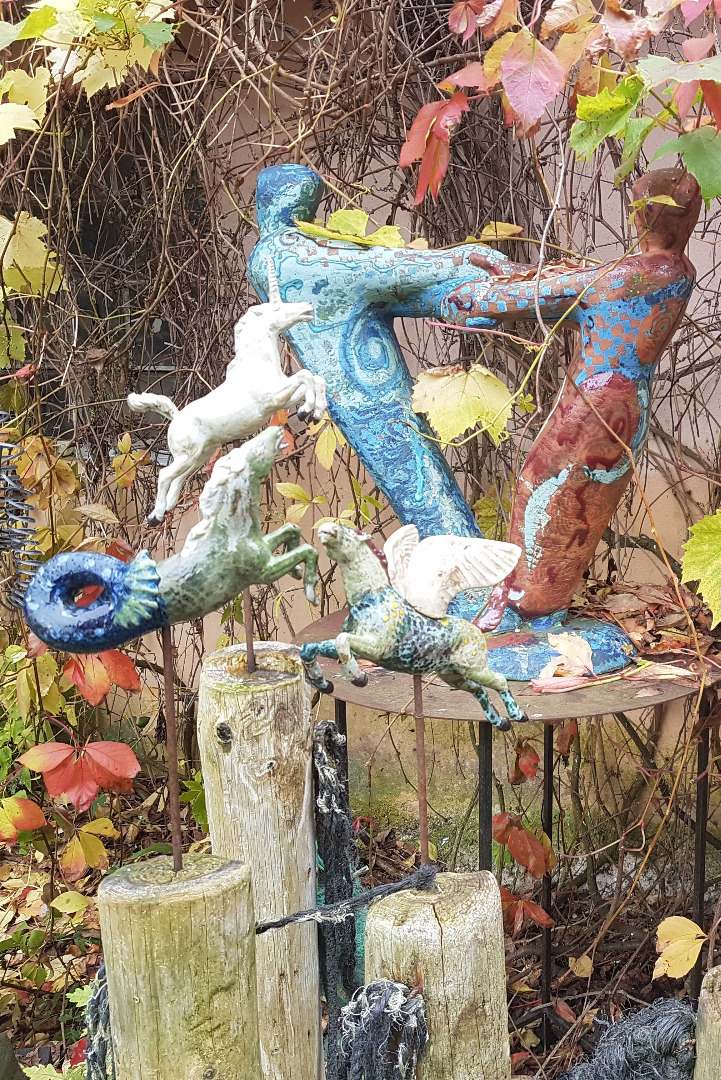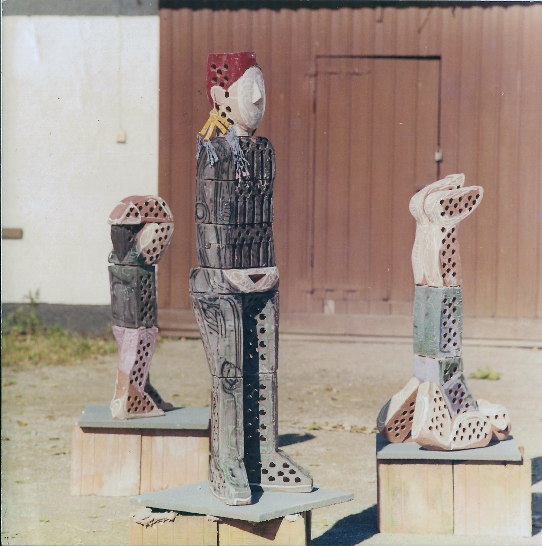 Meine plastischen Arbeiten beschäftigen sich mich mit Porträts, kleinen aber auch lebensgroßen Figuren, fantasievollen Pflanzen- und Tierplastiken, Zauberblumen“, Schachspiele, Schmuck, Handschmeichler, Nippes und Gartenplastik usw. Am Ende dieser Galerie sehen Sie meine ersten Klinkerfiguren aus dem Jahr 1986