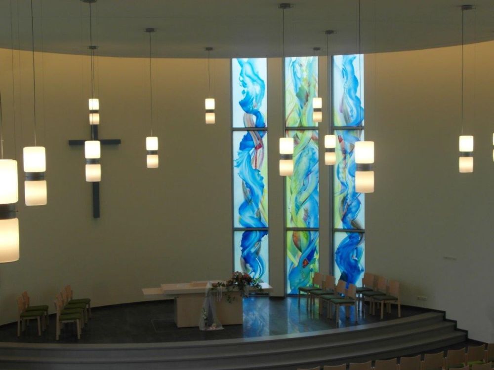 Die Kirchenfenster des Neubaus der Neuapostolischen Kirche in Rostock sind meine erste große Arbeit mit Glas, die in der Zeit von 2011 bis 2013 entstand.
