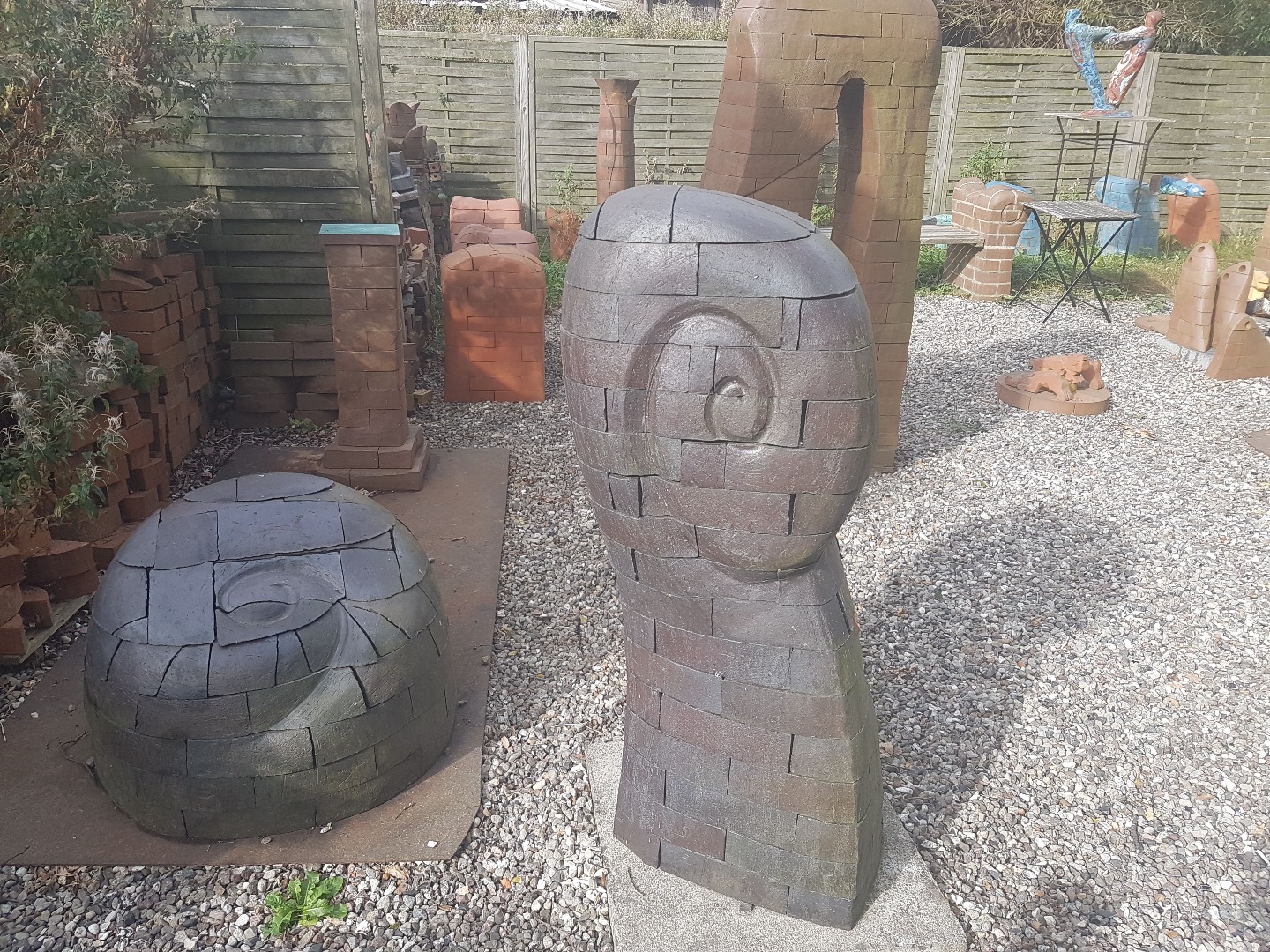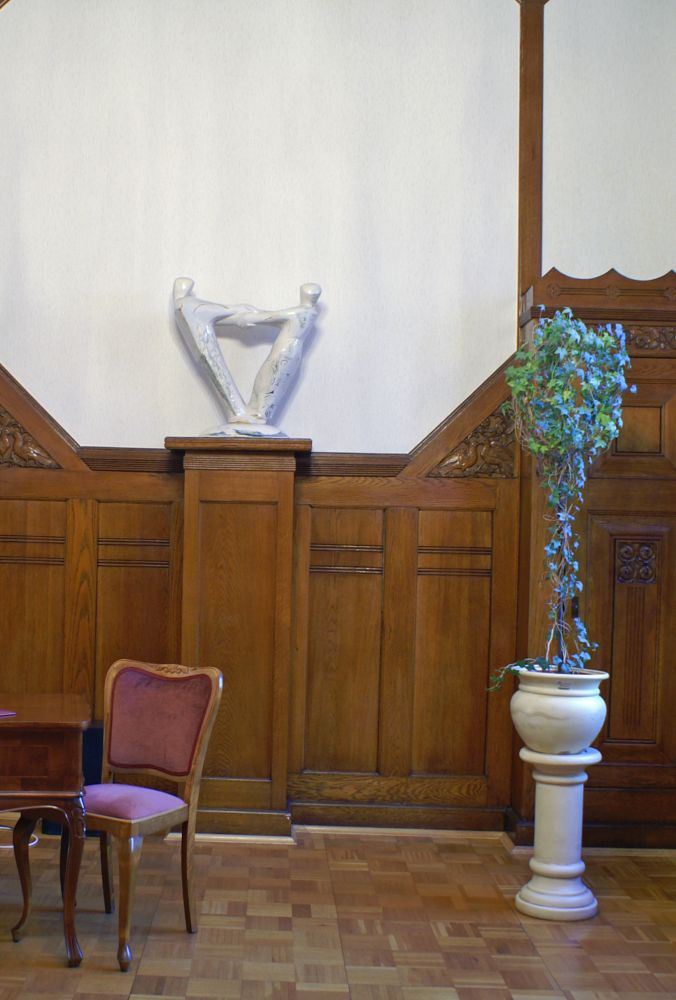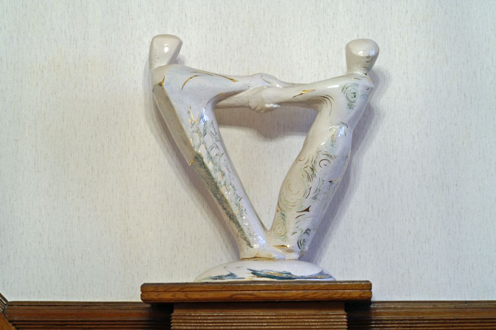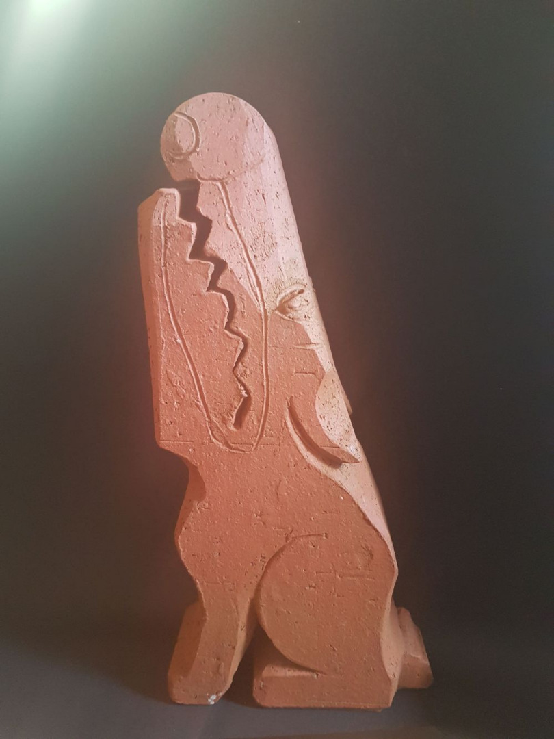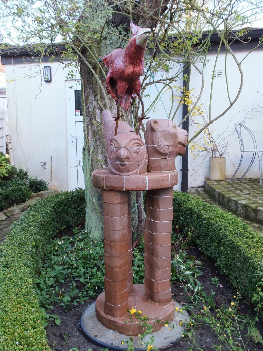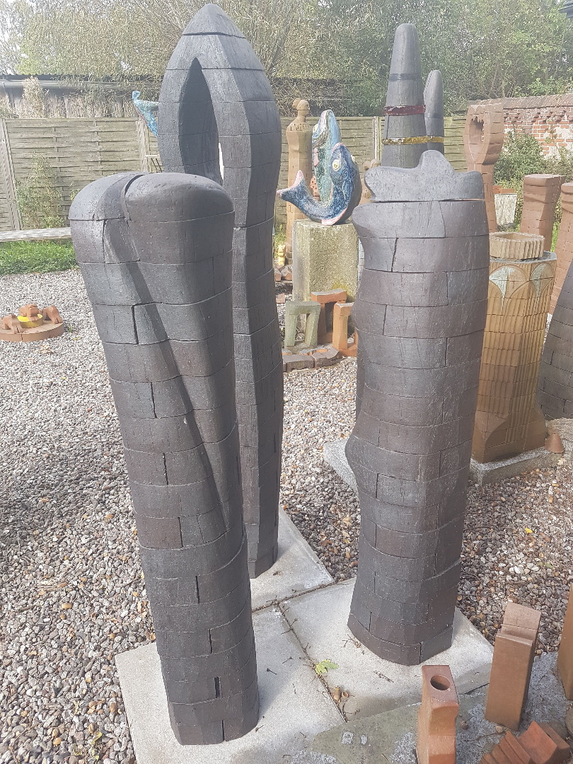 In meinen plastischen Arbeiten beschäftige ich mich mit Porträts, kleinen aber auch lebensgroßen Figuren, fantasievollen Pflanzen- und Tierplastiken. Es entstehen Objekte, die streng gebaut sind oder verspielt dekorativ, wie „ Zauberblumen“, Schachspiele, Schmuck, Handschmeichler, Nippes und Gartenplastik usw. ... Dabei gehe ich, was die Größe meines Elektroöfen betrifft, der immerhin 1 m hoch ist, bis an die Grenze der Machbakeit. Oder ich arbeite gleich im Werk mit Klinkern, wo ich mit dem Prinzip einzelner Bausteine fast keine Einschränkungen habe, auch nicht in der Farbigkeit.