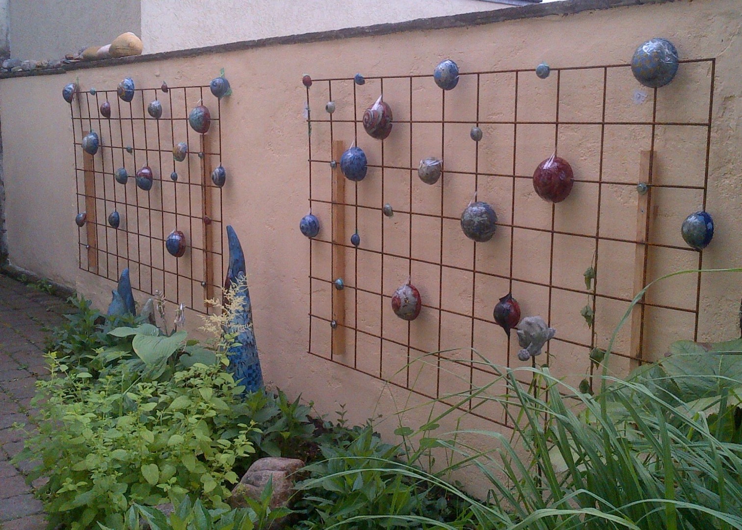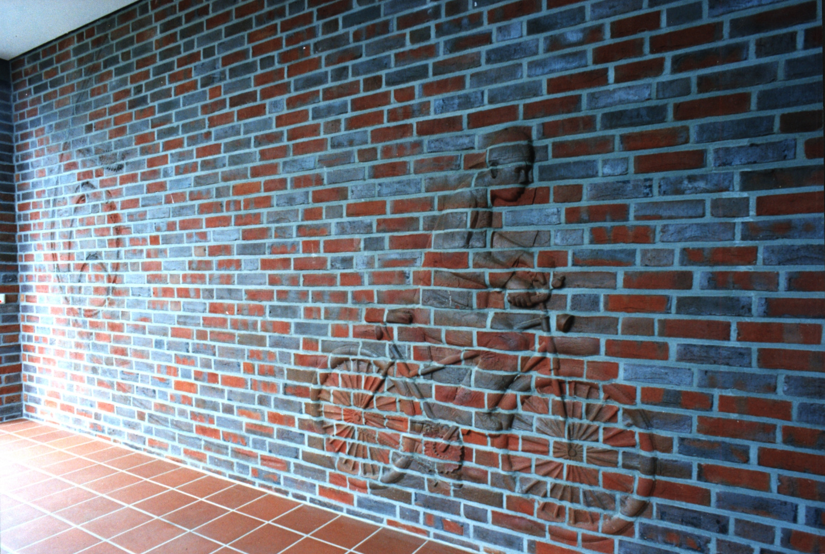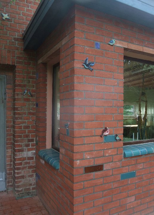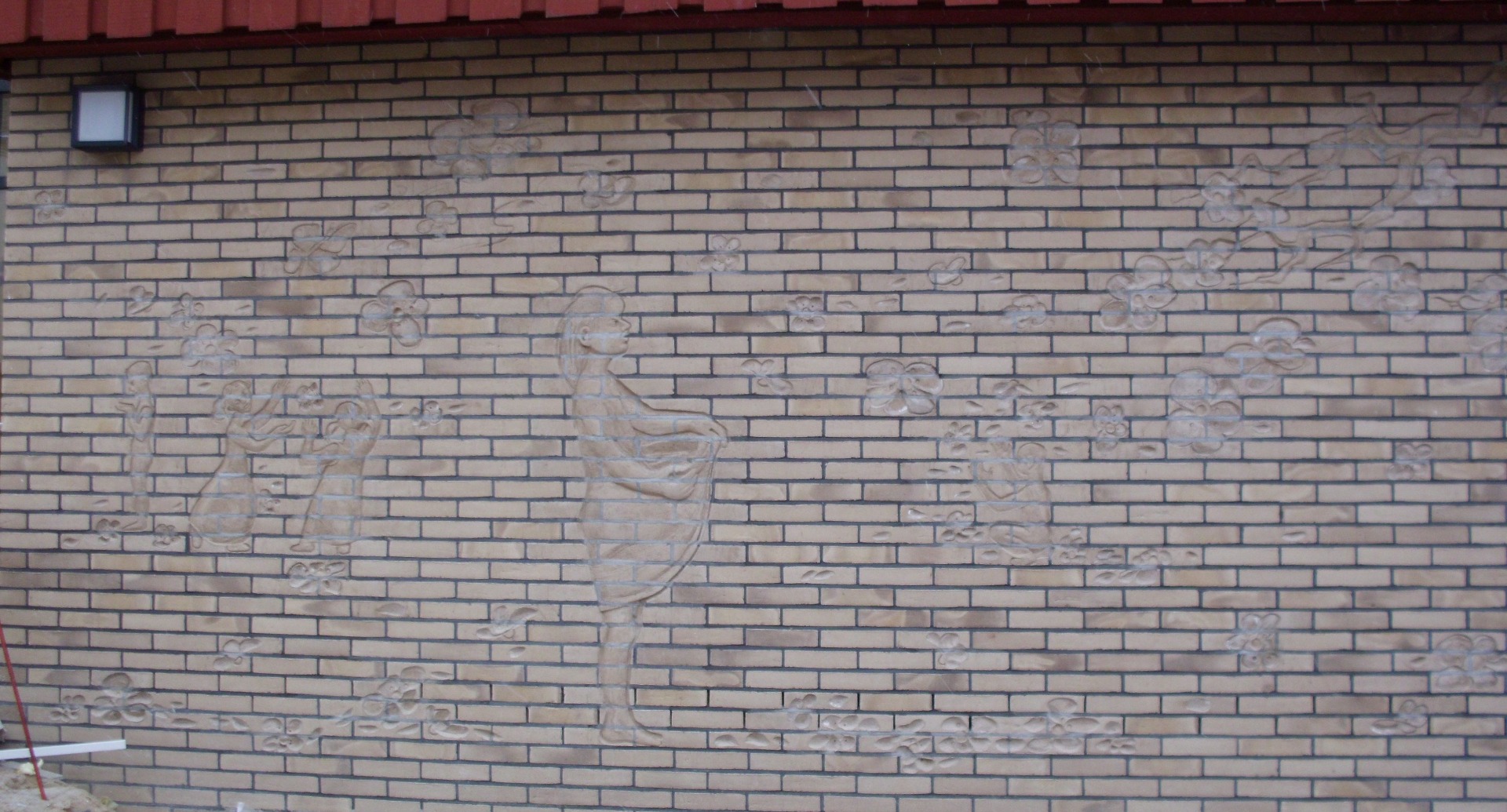 Eine wunderbare Möglichkeit ist es, Klinkerwände künstlerisch zu gestalten Wenn sie noch in der Planung sind kann die Arbeit Bestandteil der Wand werden, gleich mit hochgemauert aus den bearbeiteten Steinen der gleichen Art, entweder farbig akzentuiert oder als reines Relief. Man kann aber auch später Keramikelemente, Metallplastiken, Hauszeichen, Ausleger ect. auf die Wände montieren oder dekorative Keramik direkt anbringen. Verputzte Wände können ein farbiges Relief mit keramischen Elementen ( Putzkeramik ) erhalten. Sogar der Putz selbst kann beim Aufbringen mit einem Relief versehen werden, wenn man einen langsam abbindenden Putz nimmt.