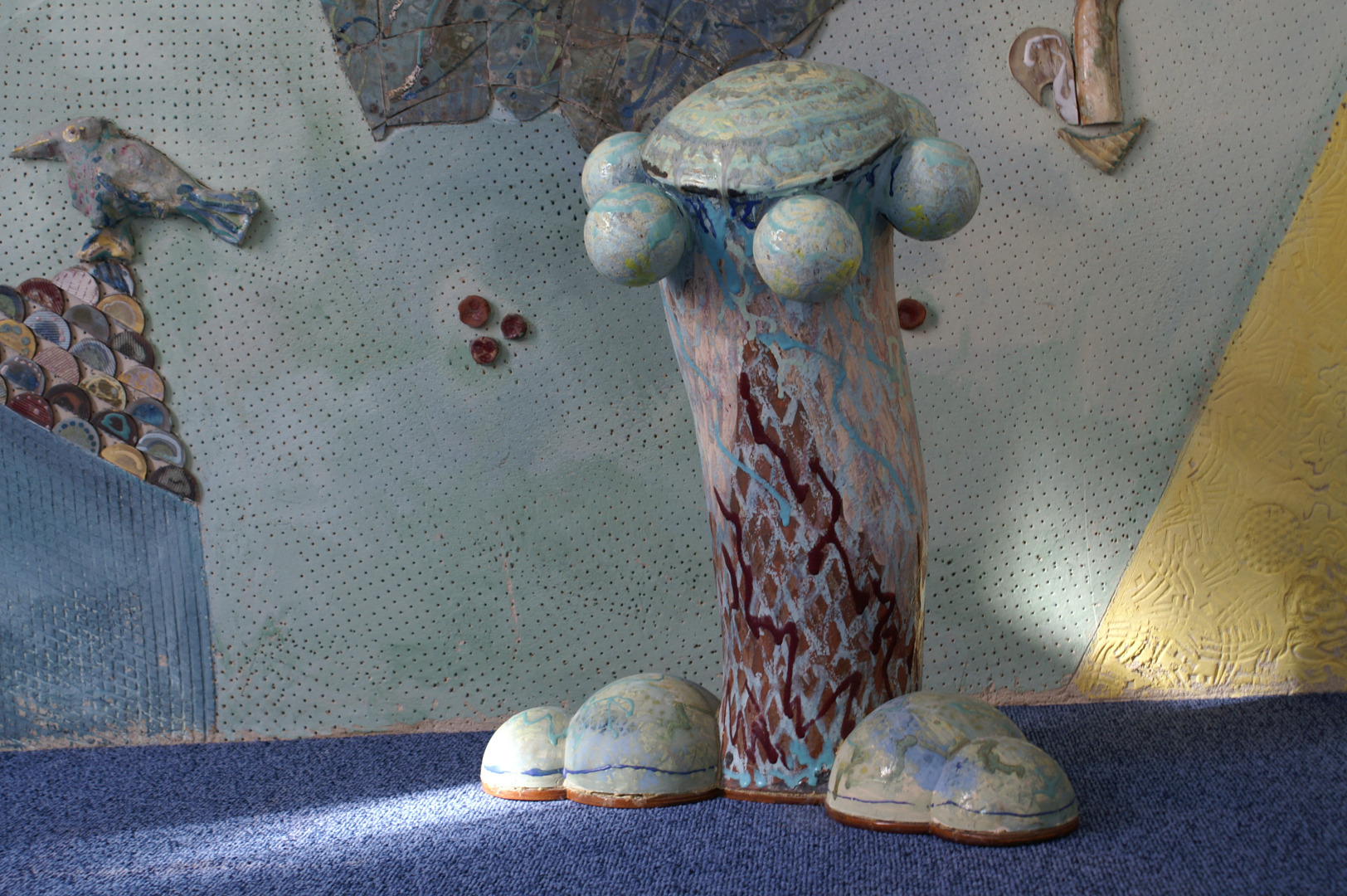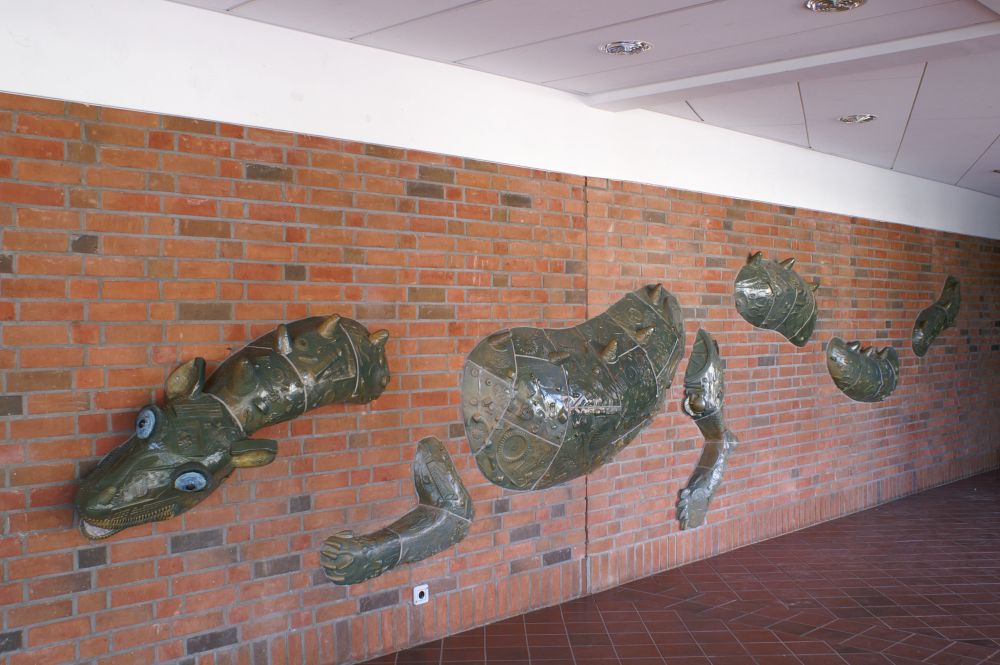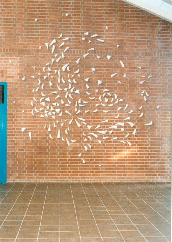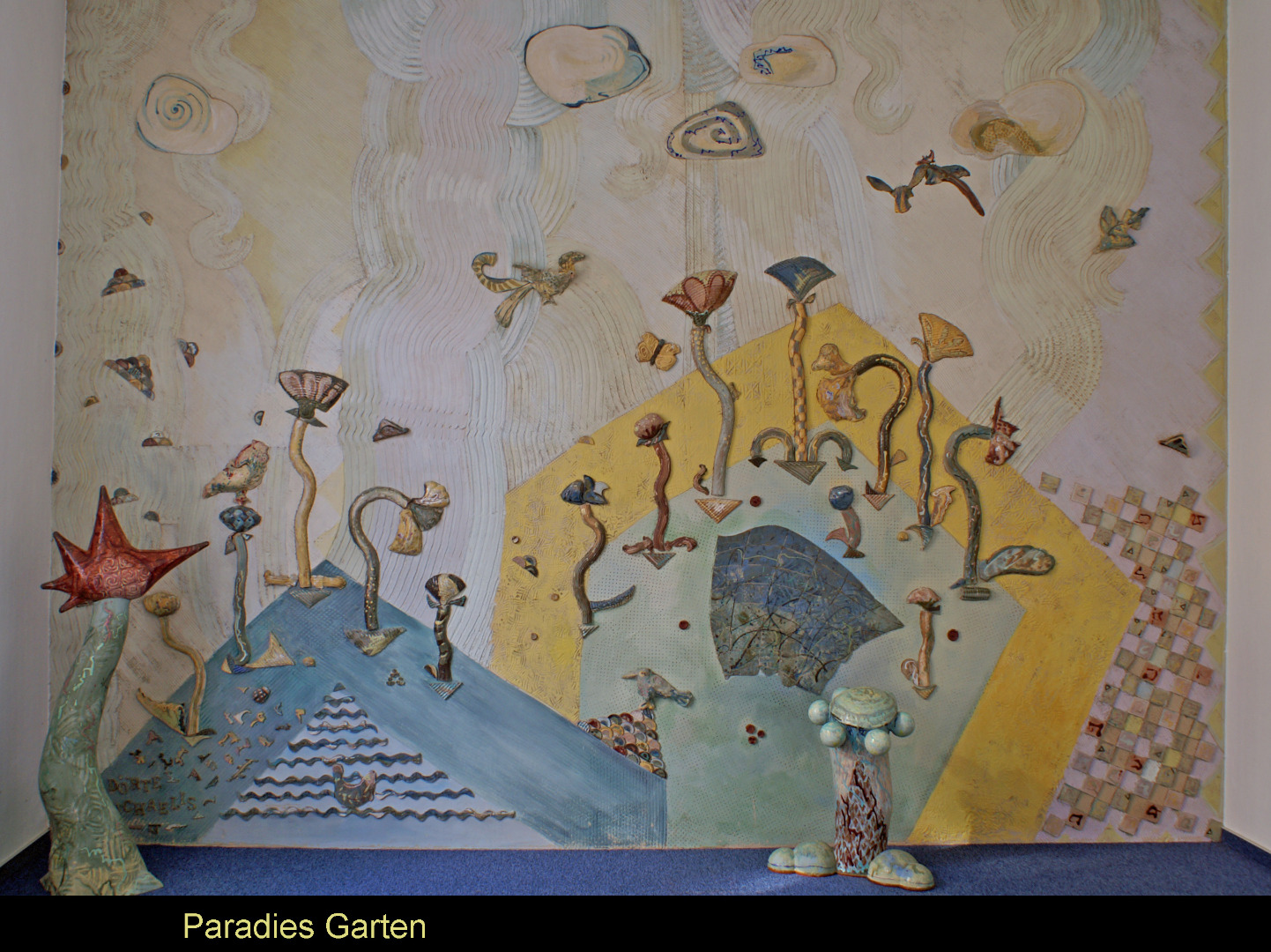 Eine wunderbare Möglichkeit ist es, Klinkerwände künstlerisch zu gestalten Wenn sie noch in der Planung sind kann die Arbeit Bestandteil der Wand werden, gleich mit hochgemauert aus den bearbeiteten Steinen der gleichen Art, entweder farbig akzentuiert oder als reines Relief. Man kann aber auch später Keramikelemente, Metallplastiken, Hauszeichen, Ausleger ect. auf die Wände montieren oder dekorative Keramik direkt anbringen. Verputzte Wände können ein farbiges Relief mit keramischen Elementen ( Putzkeramik ) erhalten. Sogar der Putz selbst kann beim Aufbringen mit einem Relief versehen werden, wenn man einen langsam abbindenden Putz nimmt.